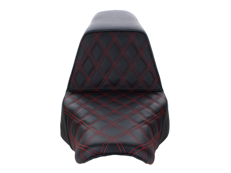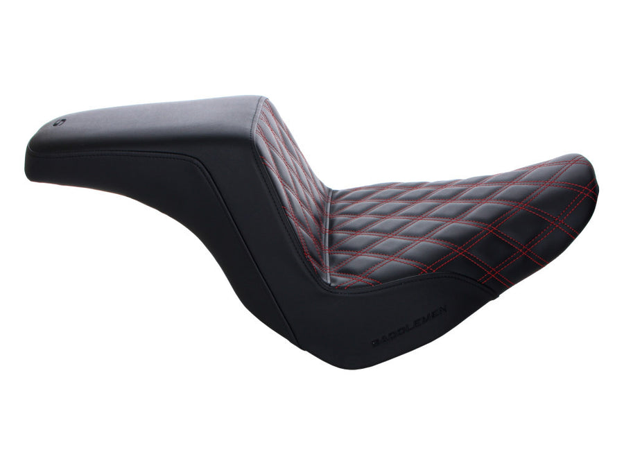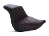 SADDLEMEN Step-Up LS Dual Seat With Red Double Diamond Lattice Stitch. Fits Sport Glide & Low Rider 2018up, Low Rider S 2020up & Low Rider ST 2022up