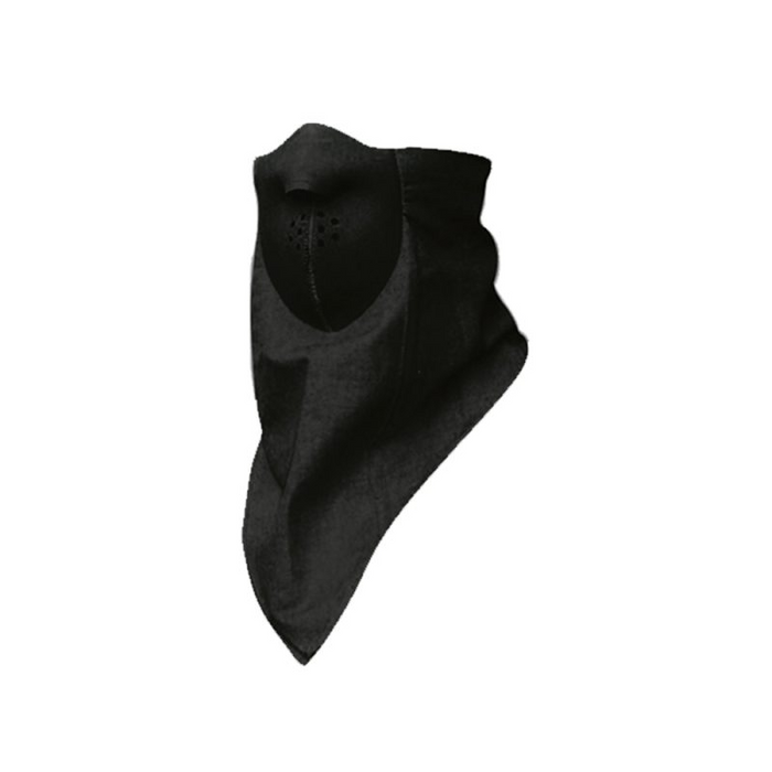 Neoprene face mask combined with a 100% cotton bandanna to ensure full coverage of the face and neck, providing a comfortable light-weight fit.
